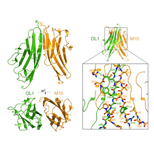 In the sarcomeric M-band, the giant ruler proteins titin and obscurin, its small homologue obscurin-like-1 (obsl1), and the myosin cross-linking protein myomesin form a ternary complex that is crucial for the function of the M-band as a mechanical link. Mutations in the last titin immunoglobulin (Ig) domain M10, which interacts with the N-terminal Ig-domains of obscurin and obsl1, lead to hereditary muscle diseases. The M10 domain is unusual not only in that it is a frequent target of disease-linked mutations, but also in that it is the only currently known muscle Ig-domain that interacts with two ligands—obscurin and obsl1—in different sarcomeric subregions. Using x-ray crystallography, we show the structural basis for titin M10 interaction with obsl1 in a novel antiparallel Ig-Ig architecture and unravel the molecular basis of titin-M10 linked myopathies. The severity of these pathologies correlates with the disruption of the titin-obsl1/obscurin complex. Conserved signature residues at the interface account for differences in affinity that direct the cellular sorting in cardiomyocytes. By engineering the interface signature residues of obsl1 to obscurin, and vice versa, their affinity for titin can be modulated similar to the native proteins. In single-molecule force-spectroscopy experiments, both complexes yield at forces of around 30 pN, much lower than those observed for the mechanically stable Z-disk complex of titin and telethonin, suggesting why even moderate weakening of the obsl1/obscurin-titin links has severe consequences for normal muscle functions.