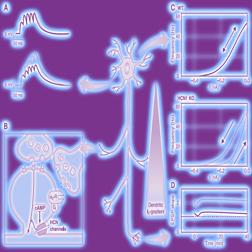 Hyperpolarization-activated cyclic nucleotide-gated (HCN) channels comprise a small subfamily of proteins within the superfamily of pore-loop cation channels. In mammals, the HCN channel family comprises four members (HCN1-4) that are expressed in heart and nervous system. The current produced by HCN channels has been known as Ih (or If or Iq). Ih has also been designated as pacemaker current, because it plays a key role in controlling rhythmic activity of cardiac pacemaker cells and spontaneously firing neurons. Extensive studies over the last decade have provided convincing evidence that Ih is also involved in a number of basic physiological processes that are not directly associated with rhythmicity. Examples for these non-pacemaking functions of Ih are the determination of the resting membrane potential, dendritic integration, synaptic transmission, and learning. In this review we summarize recent insights into the structure, function, and cellular regulation of HCN channels. We also discuss in detail the different aspects of HCN channel physiology in the heart and nervous system. To this end, evidence on the role of individual HCN channel types arising from the analysis of HCN knockout mouse models is discussed. Finally, we provide an overview of the impact of HCN channels on the pathogenesis of several diseases and discuss recent attempts to establish HCN channels as drug targets.